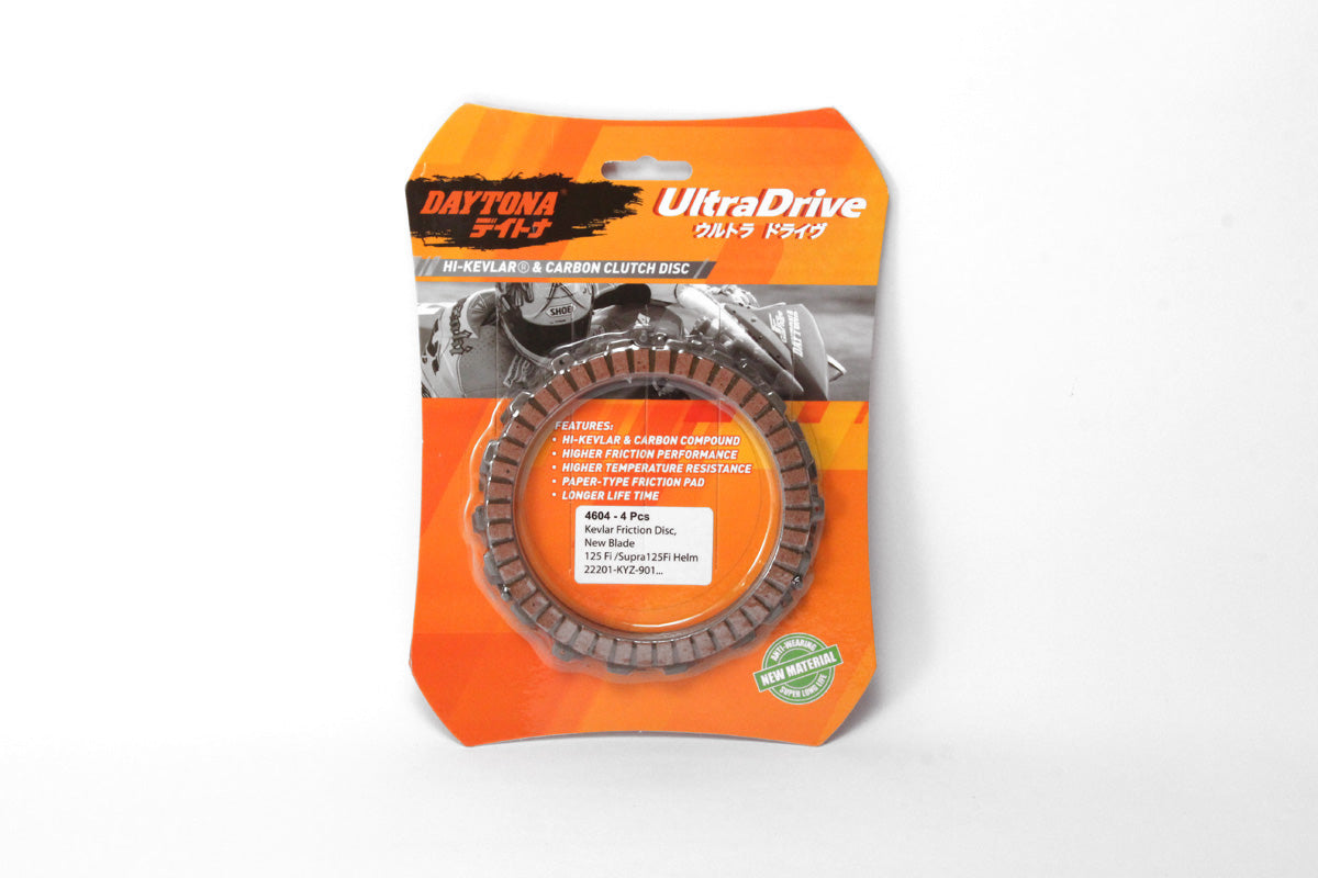 Kampas Kopling Ultra Drive Kevlar Friction Disc, 4pcs, Orange Blade 125 Fi /Supra 125Fi Helm in, 22201-KYZ-901(3), 22208-KYZ-901(1)